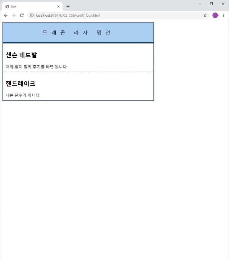 - 박스의 좌우 속성값을 auto로 지정해서 중앙에 위치.