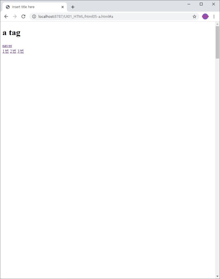 naver를 누르면 실제 네이버로 넘어가고 1번, 2번, 3번은 누르면 해당 페이지 아래로 이동합니다!