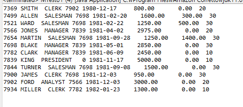 rs.getDate(5), rs.getDouble("SAL"), rs.getDouble(7), rs.getInt("DEPTNO"));