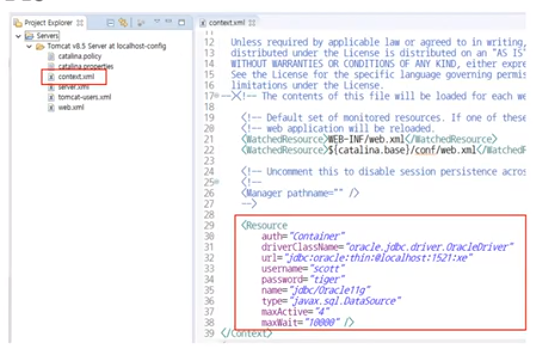 톰켓 안에 context.xml이라는 파일 안에 설정을 하게 됩니다.