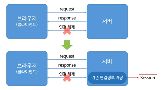 cookie(쿠키)가 클라이언트에 연결 정보를 저장하는 것이라면 session(세션)은 서버에 연결정보를 저장하는 것을 의미합니다.
