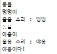 이 코드는 animal이 어떤 객체인지 판별해 주는 명령인데 객체를 만들 때는 Dog 객체로 만들었지만 이후에 Cat 객체로 바꾸었습니다.