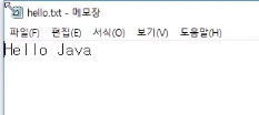 해당 파일에는 제가 Hello Java라는 글자를 작성해서 저장해두었습니다.