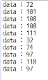 data와 이상한 숫자들이 출력이 됐는데 이 숫자는 문자가 ASCII코드로 변환되어 출력이 된 것입니다.