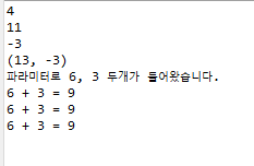 print("파라미터로 %d, %d 두개가 들어왔습니다." % (x, y))