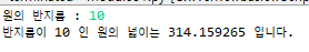 숫자(원의 반지름)을 입력받아 원의 넓이를 구하는 코드입니다.