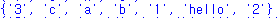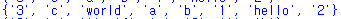 c = {'a', 'b', 'c', 'hello', '1', '2', '3'}