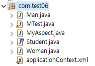 따라서 Man클래스, Woman클래스, MyAspect클래스에 @Component 어노테이션이 붙어있는데요.
