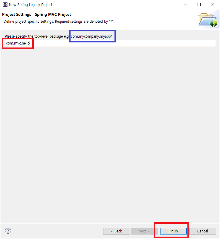 그러면 패키지 이름을 파란색 영역처럼 3단계로 적어달라고 하네요.