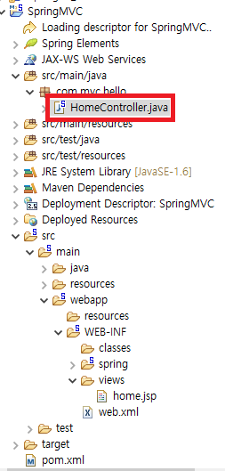 src/main/java에서 com.mvc.hello.HomeController가 있습니다.