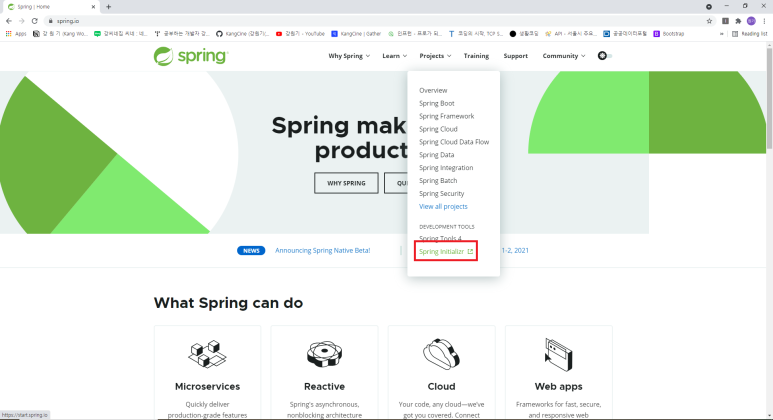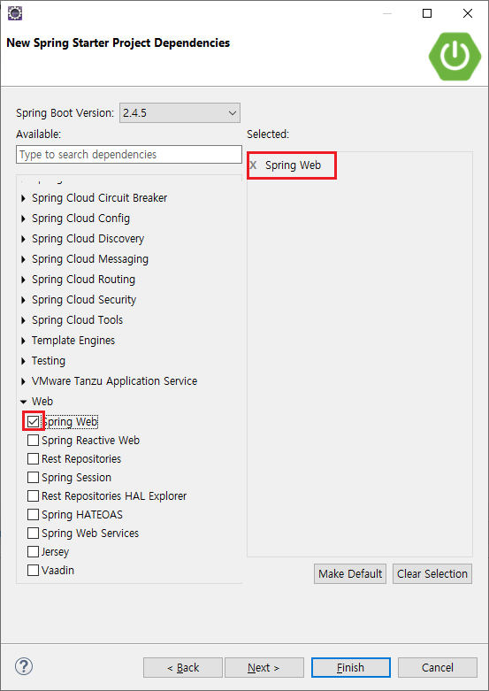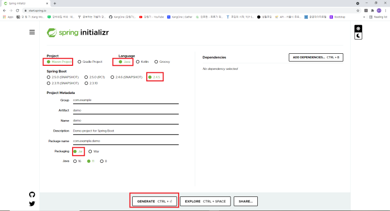 많은 내용이 있지만 Spring Web만 체크하고 넘어갈게요!