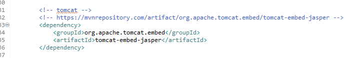 pom.xmp에 톰켓 디펜던시를 추가하겠습니다.