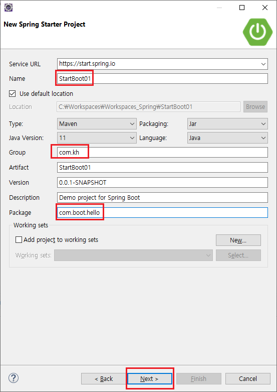 프로젝트에 그대로 저장을 할예정이기때문에 Use default location을 설정합니다.