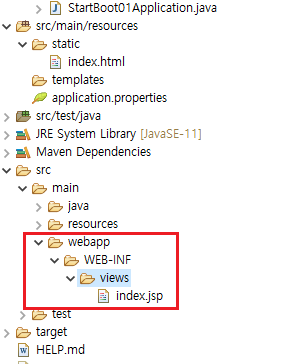 에러를 해결하기 위해 src/main아래에 webapp/WEB-INF/views에 index.jsp를 만듭니다.
