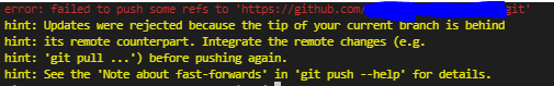 어찌어찌 커밋을 하고 푸쉬를 하려는데 다음과 같은 에러가 발생했다.
