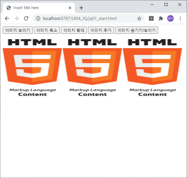 함수가 실행되면 이미지가 show() - > 보이게 됩니다.